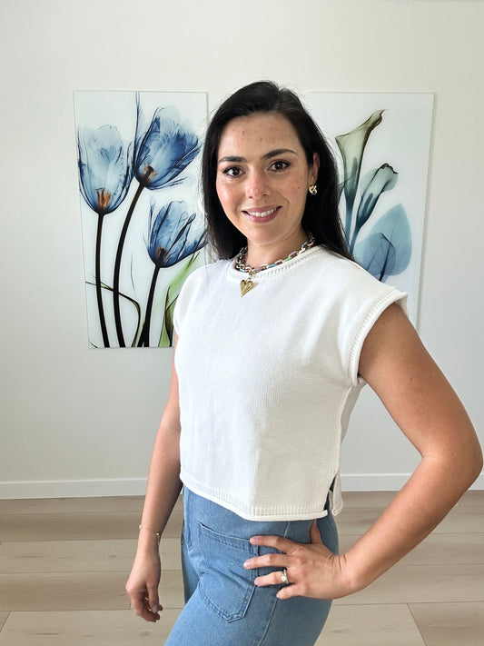 White shirt sleeve sweater