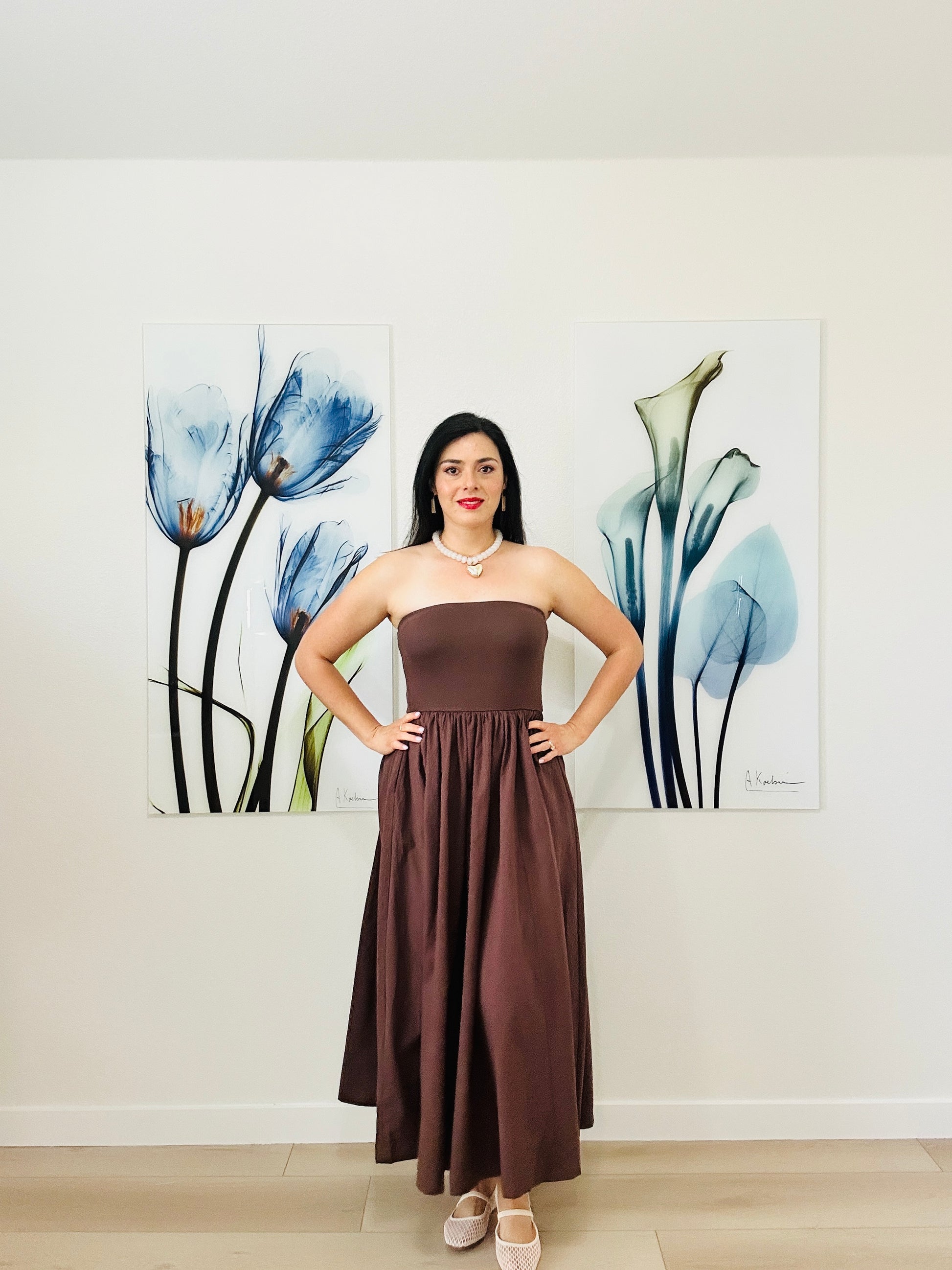 Chocolate Strapless Maxi Dress with Pockets š¤